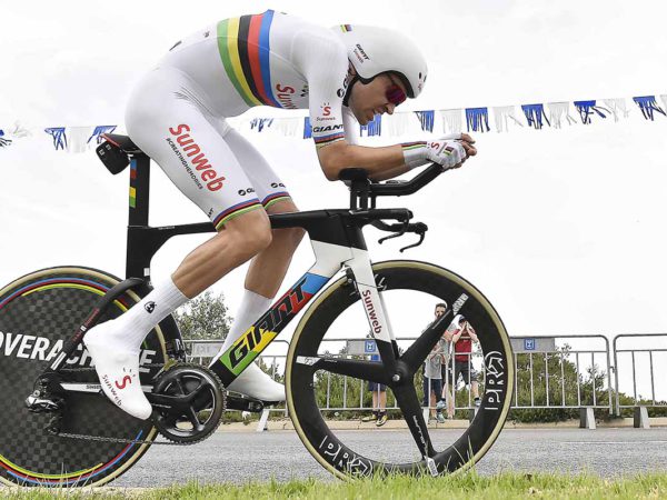 La cronometro individuale di 34,2 km, da Trento a Rovereto, non scalfisce il primato di Simon Yates. Il britannico della Mitchelton-Scott si difende molto bene cedendo 1'15" allo specialista e campione del mondo in carica della specialità Tom Dumoulin (Team Sunweb).