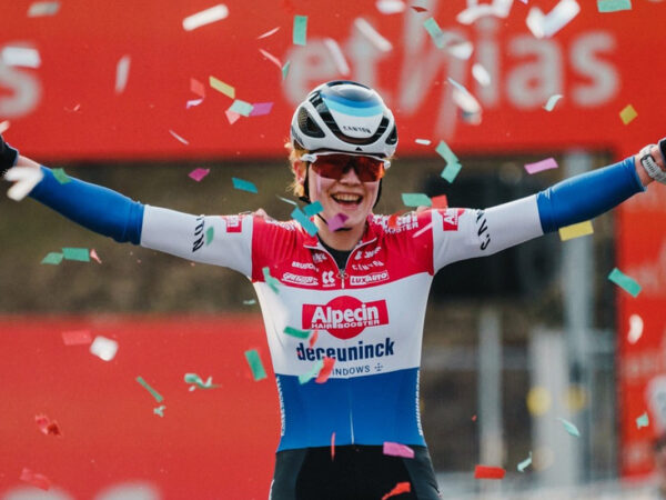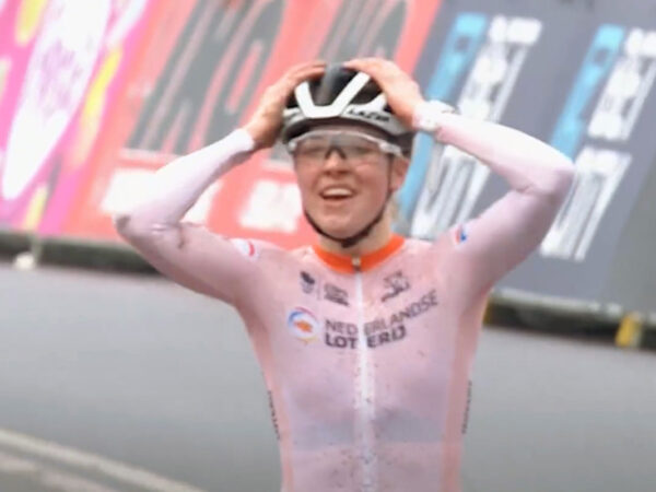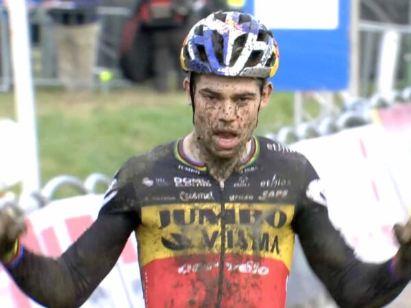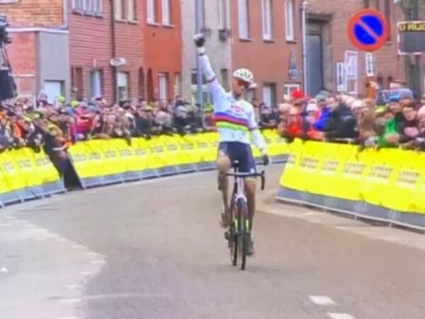 L'olandese risale il gruppo e vince per distacco. Ritirato Pidcock dopo una caduta. Tra le donne secondo successo consecutivo per Puck Pieterse.