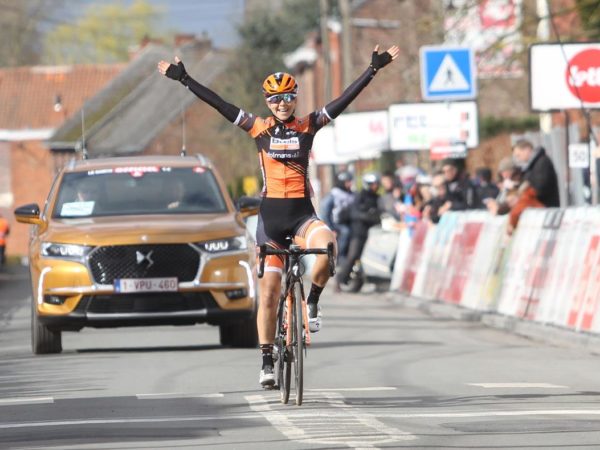 L'olandese Jip van den Bos (Boels Dolmans) festeggia la sua prima vittoria da professionista con uno splendido assolo finale a Le Samyn des Dames.