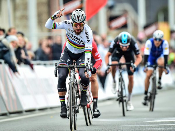 Il campione del mondo Peter Sagan (Bora-Hansgrohe) si ributta nella fuga decisiva di giornata e questa volta riesce a vincere sul traguardo della Kuurne-Brussel-Kuurne.