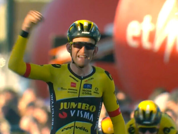 Domenica di gloria per il team olandese, che promuove l'attacco decisivo a 77 km dal traguardo e monopolizza il finale. Terzo Matej Mohoric.