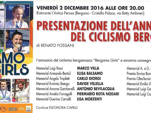 Questa sera, venerdì 2 dicembre, alle ore 20, presso il Ristorante L'Antica Perosa di Bergamo, si svolgerà la Presentazione dell'Annuario del Ciclismo Bergamasco dal titolo "Bergamo Girls".