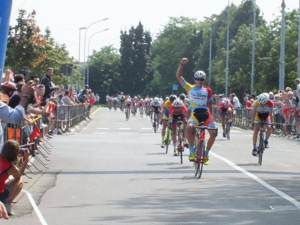 Volata vincente di Luca Morlino (GB Junior Team) che ha fatto suo oggi a Cernusco sul Naviglio il 14° Trofeo Matteo Pombi.
