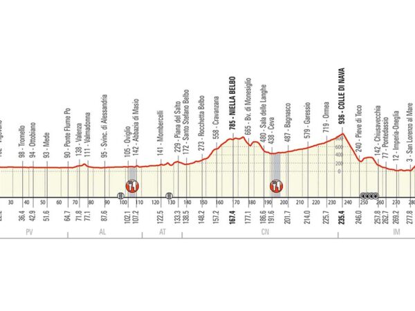 La Classicissima sarà di 299 km e si dirigerà verso la Lomellina, Alessandria per poi toccare il Monferrato, le Langhe prima di scendere sull'Aurelia.