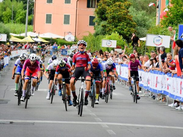 Nella volata di gruppo il trentino ha messo la sua ruota davanti a quelle di Carlo Ceccarello e Federico Scamperle.