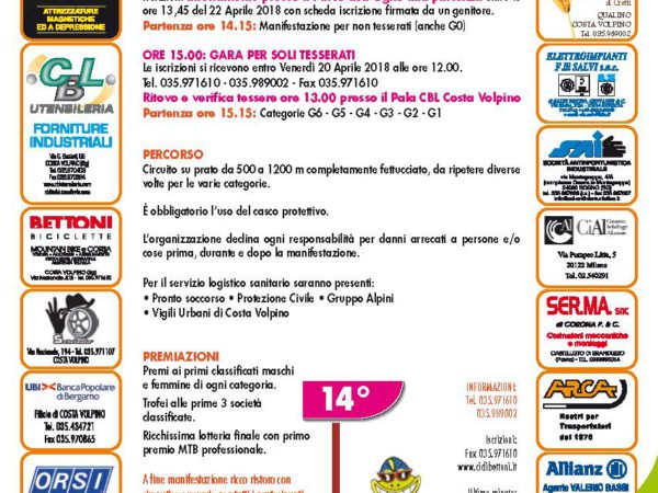 Domenica 22 aprile, con la regia organizzativa della Cicli Bettoni Costa Volpino, torna il 14° Girini in Mountain Bike - Memorial Eliana Martinelli.