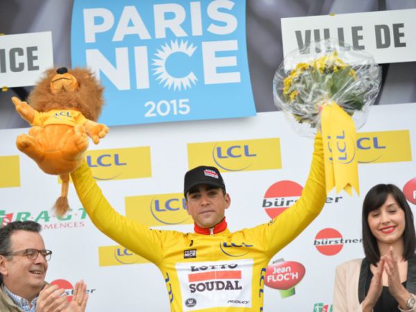 Il francese Tony Gallopin (Lotto Soudal) ha vinto la penultima tappa della Parigi-Nizza grazie ad un'azione cominciata a 30 km dal traguardo. Ora è lui la nuova Maglia Gialla con 36" di vantaggio su Richie Porte.