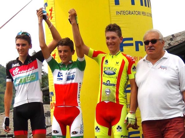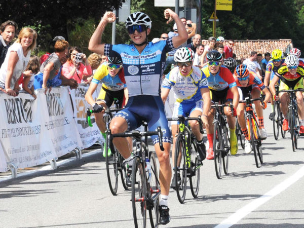 Davide Persico (Pol. Valseriana Albino) vince sul traguardo di Albino il 12° Piccolo Giro della Valseriana accorciato di 15 km a causa del maltempo.