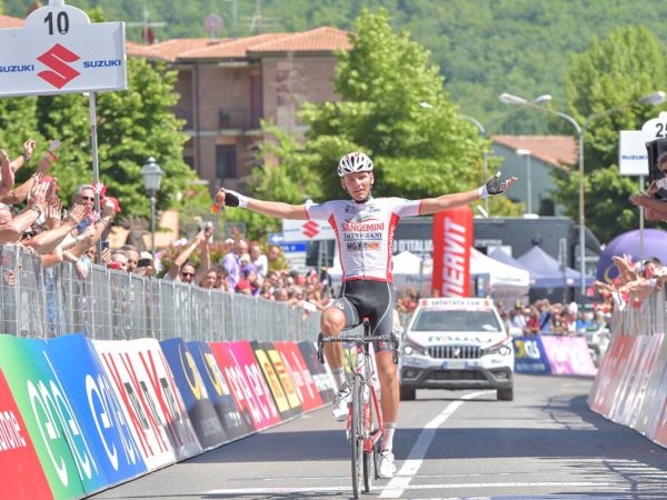 Tappa e maglia Rosa Enel, con un gran trionfo in solitaria sul traguardo di Gaiole in Chianti, per Fabio Mazzucco (Sangemini-Trevigiani).