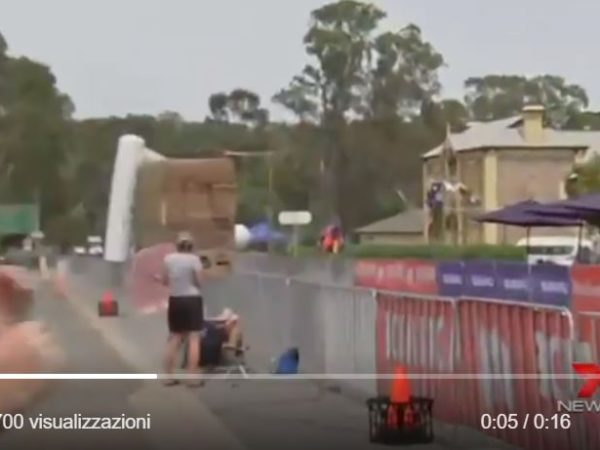 Il camion sbaglia i calcoli e si porta via l’arco d’arrivo del Santos Women’s Tour (VIDEO)