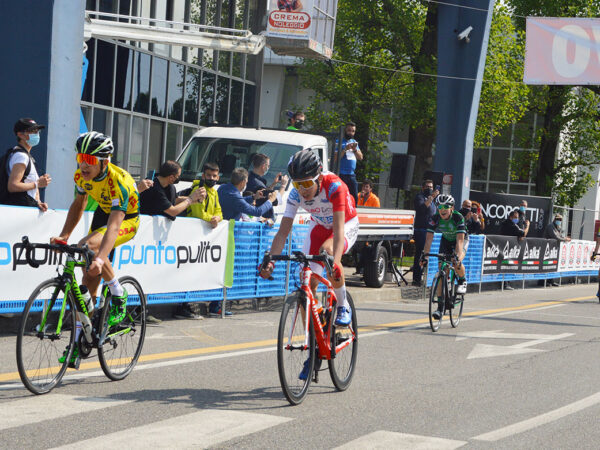 Primo successo tra gli allievi per il bresciano della Feralpi Monteclarense, che supera in uno sprint a tre Guglielmo Balconi e Dmytro Savchenko.