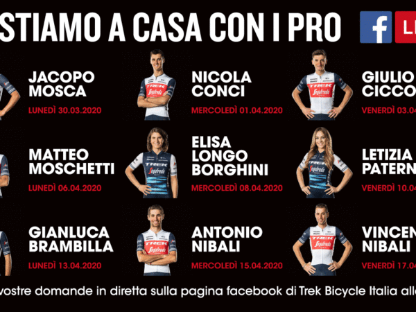 Trek Italia offre a tutti gli appassionati di ciclismo con l’iniziativa “Restiamo a casa con i pro”, una serie di nove dirette Facebook con i campioni.