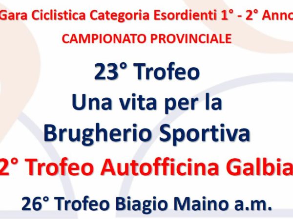 Esordienti di scena oggi a Brugherio per il tradizionale appuntamento con l'11° Trofeo Autofficina Galbiati, manifestazione ciclistica organizzata dalla Sc Brugherio Sportiva del presidente Franco Sardi che ha promosso la doppia gara.