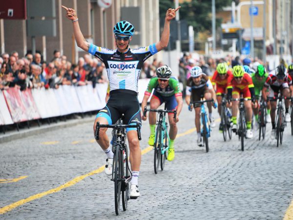 Umberto Marengo festeggia la prima vittoria da professionista, sua la prima tappa del Tour of Utah