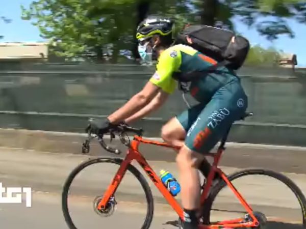 Umberto Marengo al Tg1: il pro della Vini Zabù – KTM pedala e consegna viveri ai concittadini di Collegno