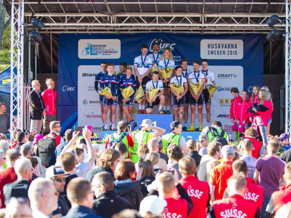 La Svizzera si aggiudica il primo titolo dei Campionati Europei MTB 2016 cominciati oggi a Huskvarna, in Svezia, con la spettacolare staffetta Team Relay.