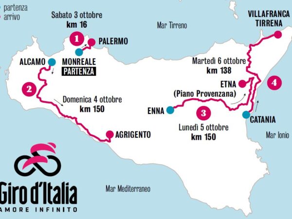 Il Giro d’Italia 2020 partirà il 3 ottobre dalla Sicilia con la crono di Monreale, poi altre tre tappe sull’Isola